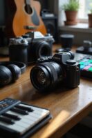 When it comes to essential accessories for hybrid video recording, we can’t overlook tripod stability for smooth shots and ensuring high-quality microphone quality to capture clear audio. Together, they dramatically enhance our overall production value.