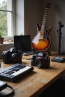 Mastering your first EP requires the right tools to elevate your sound quality and guarantee a polished final product. First, we need a reliable audio interface, which connects our microphones, instruments, and monitors, ensuring high-quality sound capture. Beginner-friendly options like the Focusrite Scarlett 2i2 can get us started, while higher-end models offer superior converters for professional results. Additionally, selecting an interface with high-resolution recording capabilities will significantly enhance the clarity and fidelity of your recordings.